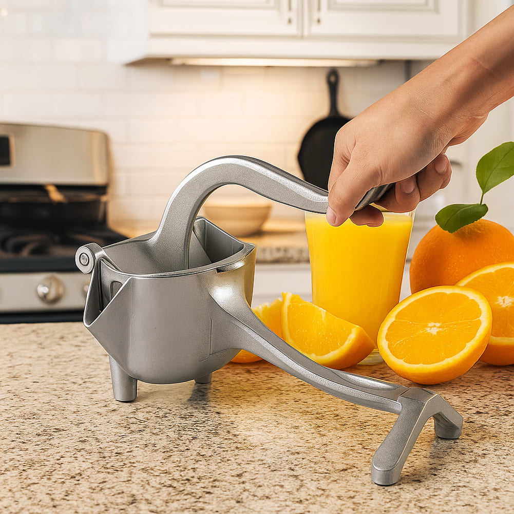 Механизм работы прост и эффективен: фрукты разрезаются пополам, укладываются на конус и прижимаются пресс-головкой. Сок проходит через встроенный фильтр, очищаясь от мякоти и косточек — вы получаете чистый и натуральный напиток!
